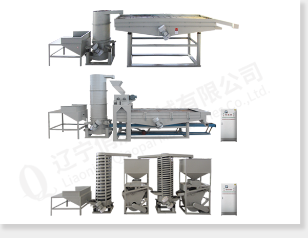Shells -removing unit consists of input hopper, spiral elevator, twin-outlet spiral elevator, shell-kernel separator (2sets). This unit can remove shells from kernels.